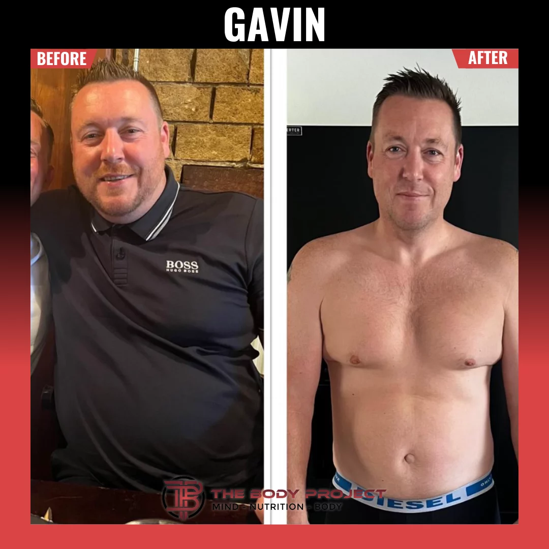 Gavin achieved his results through my coaching experise and by following The Three Pillars of Mind, Nutrition and Body that The Body Project encompasses.
